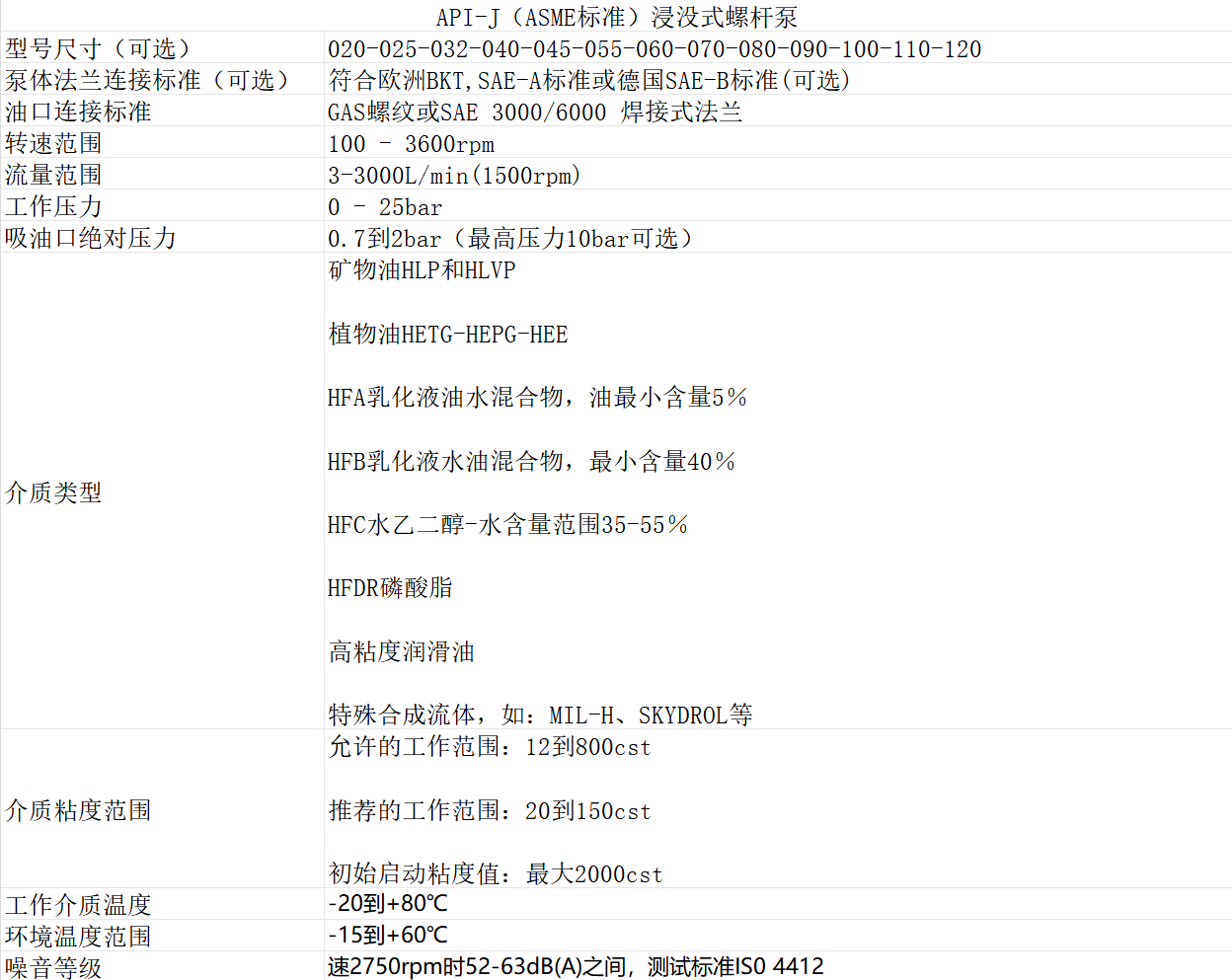 API-J(ASME標準)浸沒式螺桿泵